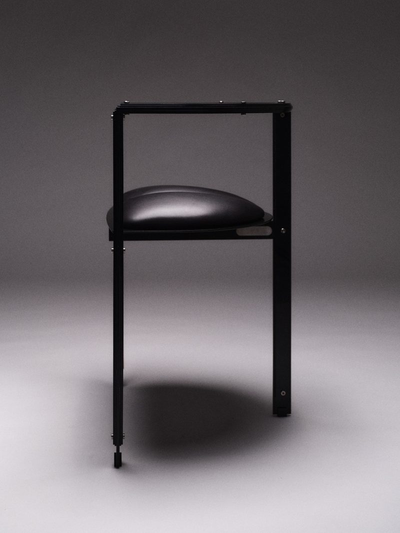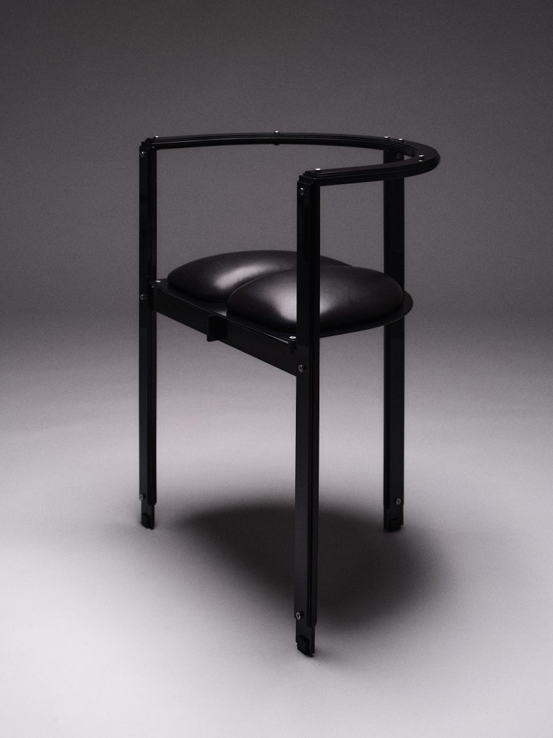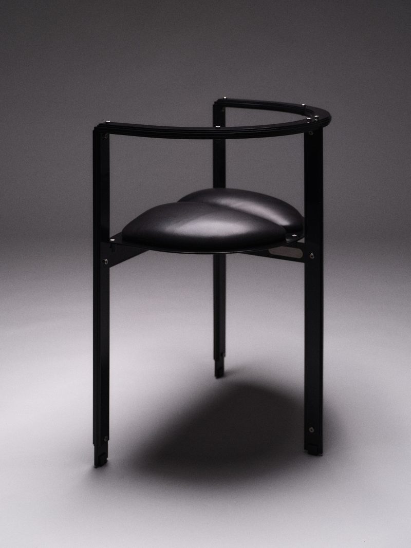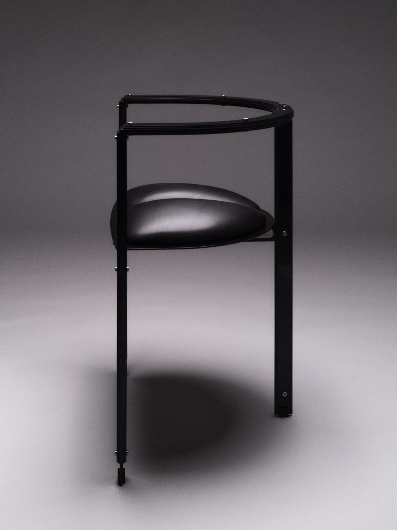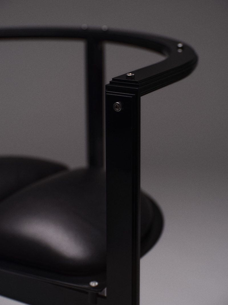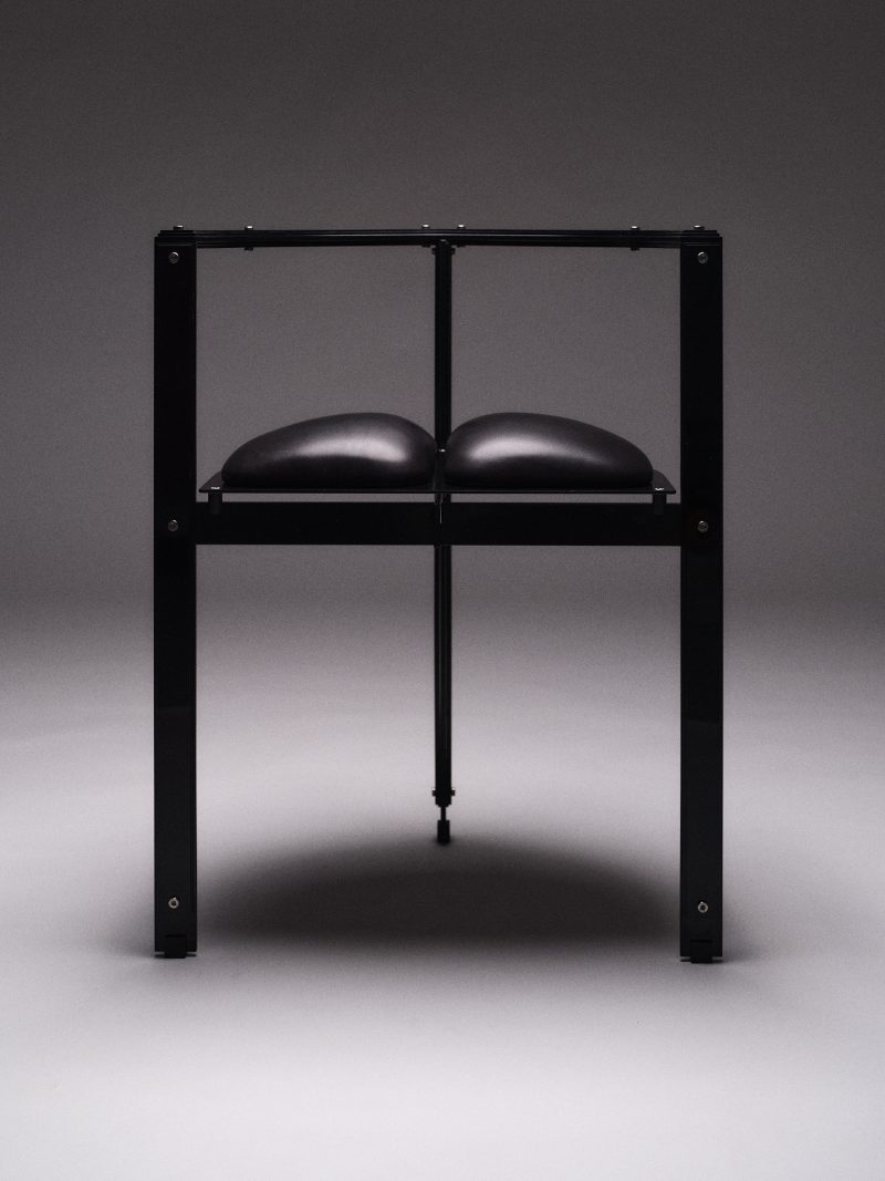 Powder coated steel, calf leather upholstery